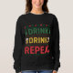 Funny Ugly Christmas Sweater Drink Beer Script Les Sweatshirts de femmes présente le texte "Drink Drink Repeat" dans une typographie hivernale branchée tricot accentuée de rennes, arbres de Noël et tasses de bière. Parfait pour Noël et fêtes et fêtes. Conçu par ©Evco Holidays www.zazzle.com/store/evcoholidays