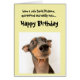 Distance sociale amusante, mis en quarantaine et totalement fou Happy Birthday Card avec un Mini-Doberman Pinscher Chien à l'air confus. Super carte pour cette personne spéciale avec un sens de l'humour. C'est un anniversaire qu'ils n'oublieront jamais.