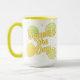Eine lebendige Kombitasse mit fröhlichen Zitronen, frischen Limettenscheiben und dem aufmunternden Motivationsspruch "Squeeze the Day" (Nutze den Tag). Die helle Zitrusgrafik und die sonnige Farbpalette bringen Energie und Positivität in die Morgenroutine, Büro-Pausen und bei durchdachten Geschenken. Perfekt für Frauen, die spielerhaftes, aufmunterndes, wunderschön illustriertes Trinkgeschirr mit einem frischen, sommerlichen Gefühl genießen.