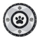 Eine moderne Darstellung eines Pfotendrucks, umgeben von Ziermustern in einem runden Rahmen. Geeignet für Themen wie Haustiere, Natur, Tierpflege und zeitgenössische Grafikelemente.
