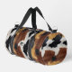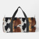 Unser neues Design für eine Sporttasche zeigt ein Bild eines braunen, schwarzen und weißen Kuhfell-Texturdrucks.