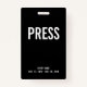 Einfaches Schwarz/Weiß Press All Access Pass Event ID Abzeichen. Für Journalisten und anderes Medienpersonal. Bearbeitbare Vorlage. Karo der Erholung der Kollektion für andere Designvarianten.