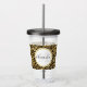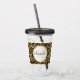 Ein Akrylatscher mit einem stilvollen Muster. Exotische schwarze Leoparden auf einem goldenen Hintergrund. Wilder und dennoch eleganter Stil. Oben platziert ist ein weißer Rahmen mit einem goldenen Rahmen aus Imitat, in dem der personalisierte Monogramm-Initial und Name enthalten ist.