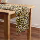 Tischläufer mit einem stilvollen Muster. Exotische schwarze Leoparden auf einem goldenen Hintergrund. Wilder und dennoch eleganter Stil.