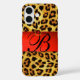DRUCKTE LEOPARFUR RED RUBY GEMSTONE MONOGRAM, iPhone 16 HÜLLE