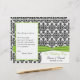 Dieses Schwarz-Weiß Damast Hochzeitsprogramm oder Dienstorden hat ein hübsches, grünes, PRINTIERTES Band, zusammen mit einem PRINTIERTEN Diamantenschmuck, das zu der unten gezeigten Hochzeitseinladung passt. Wenn Sie Hilfe benötigen, um Ihre Informationen richtig einzustellen oder richtig auszurichten, senden Sie bitte eine E-Mail an niteowlstudio@gmail.com. Ihr Dokument wird ausgedruckt, wie es auf Ihrem Monitor angezeigt wird. Es wird NICHT für Tippfehler, Ausrichtung usw. von Zazzle bearbeitet. ****BITTE BEACHTEN SIE, dass es sich bei dem hochwertigeren Papier um einen Kartenvorrat handelt und sich nicht gut falten lässt (Risse das Design entlang der Falte, selbst wenn man es mit einer scharfen Kante vorschneidet).