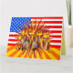 Hier haben wir ein Schlagzeug in Brand mit einem Hintergrund der US Flagge in den USA.