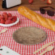 Das Design dieses Stückes zeigt ein Foto von getrockneter Erde. Es ist dunkelbraun und ist aus Wassermangel gerissen. Obwohl es ein Zeichen schlechter Klimaverhältnisse ist, produziert es ein sehr schönes Muster.