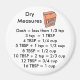 Behalt diesen "Trockenmess"-Magneten in der Nähe für die Zeiten, in denen du nach Messäquivalenten suchst. Auch den Magneten Liquid Measures bekommt Ihr sicher! BITTE BEACHTEN SIE: Dieses Design ist urheberrechtlich geschützt und darf nicht kopiert oder weitergegeben werden. Für Anfragen zu diesem oder anderen Designs in diesem Geschäft oder wenn Sie Hilfe bei der Anpassung, Farbauswahl oder Sonderbestellungen benötigen, verwenden Sie bitte die E-Mail-Funktion, die an diesen Shop angeschlossen ist, und wir helfen Ihnen gerne weiter