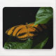 Ein Foto eines Orangefarbenen Schmetterlings auf der Suche nach Zuflucht in einer Pflanze Blätter.