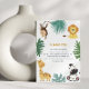 Dschungeltiere Themenkarte für eine Babydusche. Der Text und die Farben können personalisiert sein.