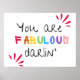 Dieses moderne, aufregende und positive Zitat ist der perfekte Weg, um mit diesem kühlen Typografie-Poster einen charmanten Spread Sunshine (und Sass) hinzuzufügen! Müde von langweiligen Mauern? Injizieren Sie eine sofortige Persönlichkeit mit diesem auffälligen Poster! Das trendige Typografie-Design zeigt die Typografie, die das Zitat "You Are Fabulous Darlin'" inspiriere und jedem Raum eine Touch von Sass und Sonnenschein hinzufügt. Dieses Poster ist nicht nur dekorativ, es ist eine tägliche Dosis an Fantasie - eine ständige Erinnerung, Ihre Großartigkeit zu begrüßen! Hängen Sie es in Ihrem Schlafzimmer für eine morgendliche Abholung, in Ihrem Wohnzimmer, um Konversation inspirieren, oder überall, wo ein Berst von Positivität benötigt.