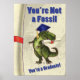 Sind Sie geschlossen oder kennen Sie einen Absolvent der Schule? Wir haben eine humorvolle Karte perfekt für den Anlass, Sie sind kein Fossil! Du bist Graduate. Unser Design zeigt eine niedliche Abbildung eines grünen T-Rex Dinosauriers, der eine blaue Graduierungskappe trägt und einen Diplom-Scroll in seinem Mund vor einem Pergament-gelben Hintergrund mit unserer Signatur-Textur hält und auf dem links mit einem roten Band. Holen Sie Ihrem besonderen jemanden eine Karte, die seinen lustigen Knochen kitzelt.