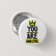 Im Nachhinein würde ich eher den Button mit Magnet bestellen... damit dieser bei jeder Kleidung angebracht werden kann. Sehr gute Bildqualität