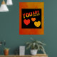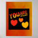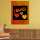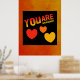 Phantastische Poster in Rot-, Orange- und Gelbgradientenfarben mit den entsprechenden Farbherzen. Der schwarze Hintergrund kann vom Kunden geändert werden. Von celeste@khoncepts.com