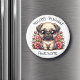 Niedlicher Chibi Cartoon gemütlicher kleiner Mops Welpen Hund sitzend in rosa Blume Magnet.