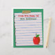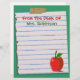 Personnalisez cette en-tête personnalisée, "From The Desk Of", avec n'importe quel nom sur ce papier carnet déchirée, collé à un arrière - plan vert avec une illustration de pomme rouge sur le fond. Ou, laissez le texte entièrement de côté. Modifiez facilement la couleur et le style de texte et la couleur arrière - plans. Il suffit de cliquer sur la personnaliser, puis de cliquer sur "couleurs" pour les modifier. Faites un grand cadeau personnalisé, amusant et utile pour ces enseignants spéciaux dans votre vie. Personnalisez-en aujourd'hui !