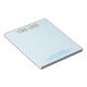 Personnalisez notre bloc-notes avec votre logo d'entreprise ou logo d'école et un texte personnalisé. Conçu en bleu clair et d'autres couleurs (toutes les couleurs sont personnalisables).* Les blocs-notes à marque personnalisée peuvent promouvoir votre entreprise en tant qu'objet publicitaire et papeterie de bureau. La taille est de 14 cm x 15,2 cm. Aucune quantité minimum de commande et aucun frais de configuration.