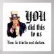 Onkel Sam zeigt mit dem Finger auf jeden, der für Vergeltung statt Freude gestimmt hat oder dachte, Biden sei zu albern und Kamila habe nicht genug getan, um ihre Stimme zu verdienen. Außerdem auf jeden gewählten Amtsträger, der sich geweigert hat, für die Demokratie einzustehen. Ja, du bist es, der uns in dieses Chaos gebracht hat. Jetzt repariert es bei der nächsten Wahl oder der übernächsten.