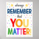 DENKE IMMER DARAN, DASS DU BEDEUTET! Ein großartiges Poster, um in einem Schulberatungsbüro, Kindertherapeut oder Kinderpsychologe zu hängen, um Kinder daran zu erinnern, dass sie wichtig sind! Ein sehr niedliches Poster, mit dem man das Klassenzimmer oder das Büro dekorieren kann! Die Farben sind hell, lustig und fröhlich.