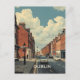 Irland, eine Retro-Postkarte von Dublin, besticht durch die lebhaften Straßen, die klassische Architektur und die zeitlose Atmosphäre in warmen, nostalgischen Tönen.