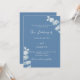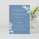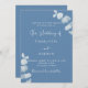 Arrière - plan bleu poussiéreux, décoré de tiges d'eucalyptus, sprigs. Personnalisez et et vos noms et les détails. Dos : arrière - plan bleu poussiéreux.