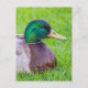 Ein schönes Bild eines Drake entspannend auf dem Gras.