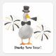 Feiern Sie den Neujahrsducky-Stil! Dieser lustige festliche Aufkleber verfügt über eine niedliche, weiße Pekinente mit einem Top Hut, Bogen-Krawatte, Horn und Feuerwerk. Die Meldung "Ducky New Year!" kann in jede Kopie Ihrer Wahl geändert werden.