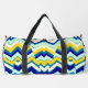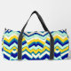 Duffel Bag, Ein vielfarbiges klassisches Zickzackmuster-Design. Ein kreatives, attraktives und trendiges Design der Duffle-Tasche. Ein Duffle-Beutel ist ein zylindrischer Tasche, der aufgrund seines geräumigen Interieurs und der einfachen Tragebarkeit mit Schultergurten oder Griffen häufig für die Beförderung von Kleidung und persönlichen Gegenständen während der Reise oder während der sportlichen Aktivitäten verwendet wird.