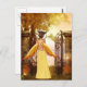 Eine brünette Fee mit einem goldenen, rücksichtslosen Gewand mit gelben und verbrannten orangefarbenen Flügeln wird durch ein schmiedeeisernes Tor stehend, das in einem inspirierten Herbst mit wilden Blume das Wasser des Sees anschaut. Das ist der perfekte Ort, um das gemütliche Gefühl im Herbst zu genießen!