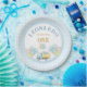 Serve party treats in style with these dump truck first birthday paper plates! Featuring a cute truck carrying gifts and balloons with soft baby blue gingham pattern and dotted borders and the text “Rolling into ONE,” they’re perfect for a boy’s first birthday party. Fully customizable with name and age, these plates add a fun, coordinated touch to your celebration.