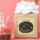 Origineller Holzschnitt aus gedämpften Knöpfen auf einem Aufkleber, den Sie für Wasserflaschen oder Geschenke verwenden können.