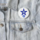 Modernes Design mit einem "leuchtenden" blau-weißen Stern auf weißem Hintergrund. Button-Abzeichen mit individualisierbarem Design für Sie, um Ihre eigenen Texte, Bilder und Ideen zu personalisieren. Bitte beachten Sie, dass es sich um ein gedrucktes Bild handelt, das mit Originalfotos und Digitaltechnik erstellt wurde, es nicht glänzt oder echte Glitzern enthält.