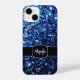 Personalisieren Sie Imitate funkelnd mädchenhafte iPhone Gehäuse mit Ihrem Initial und Namen. Schwarz-Weiß-elegantes Monogramm. Schöne dunkelblaue Glitzer Glitzern. Schöne mädchenhafte dunkelblaue glänzende Glitzer Glitzern. Foto der blauen Glitzern, nicht der eigentliche Glitzer!