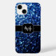 Dunkelblaue, glänzende Imitate Glitzer funkeln Monogram Case-Mate iPhone Case. Personalisieren Sie Ihre Eingabe und Ihren Namen. Schöne glamouröse blau glänzende Glitzer Glitzern. Foto der blauen Glitzern nicht wirklich Glitzer!