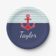 Nautische Teller mit rotem Anker und personalisiertem Namen.