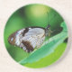 Dunkelbraune und graue Schmetterlinge vor grünem Hintergrund.