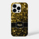 Dunkelgoldgelbe Imitate Glitzer Glitzern Monogram iPhone 14 Pro Hülle