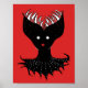 Creepy Dämonin Poster mit einer Vektorgrafik einer weiblichen Figur - dunkles, seltsames Mädchen, das das Gehirn mit Zähnen geöffnet hat und bereit ist, das gesamte Wissen der Welt zu verschlingen. Oder mehr Gehirne. Was immer leichter ist.