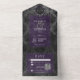 Dunkelgotischer schwarzer und Lila Damast QR-Code All In One Einladung