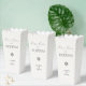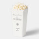 Moderne minimale Hochzeit Popcorn Gefälligkeitsboxen mit schicker und stilvoller Anziehungskraft. Das Design besticht durch ein zeitgenössisches Set an Schriftart in dunkelgrauem Schriftart vor einem zarten, weichen Elfenbeinhintergrund.