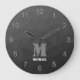 Dunkelgrau Gradient Geometric Mesh Muster Monogram Große Wanduhr