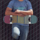 Moderne Muster aus verschiedenen Retro-Streifen auf dunkelgrauem Hintergrund.