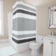 Duschvorhang mit dunkelgrauem Streifen.