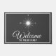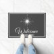 Themed nautischfußmatte, die eine weiße Kompass-Rose über dunkelgrauem und Ihrem personalisiertem Familiennamen kennzeichnet.