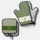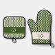Dunkelgrün und Mit Monogramm Polka-Dot Ofenhandschuh & Topflappen-Set