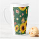 Diese große, latte Tasse hat einen dunkelgrünen Hintergrund mit Blume und Vögeln.