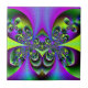 eine bunte Fraktalkunst-Entwurfsfliese der dunkelgrünen Schmetterlinge mit lila Hintergrund