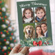 Diese stilvolle Weihnachtsfotokarte ist eine elegante Art, Ihren Feiertagssjubiläum zu teilen. Mit vier Plätzen für Ihre eigenen Fotos präsentiert die Karte Ihre Lieblings-Erinnerungen des Jahres in einer Galerie auf dunkelgrünem Hintergrund. Unter den Fotos befindet sich ein Wintergarten, mit roten Beeren und einem Schleifenbogen, im Aquarell-Stil. Klicken Sie auf "Personalisieren", um Ihre ausgewählten Bilder in die Vorlage zu fügen und genießen Sie das Versenden Ihrer einzigartigen Karte an Familie und Freunde.