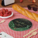 Dunkelgrünes Aquarellkleid & Glam Wave Sweet 16 Pappteller